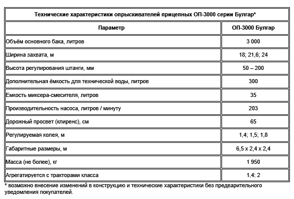 Опрыскиватели прицепные ОП-3000 серии Булгар