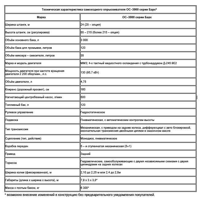 Высокопроизводительный опрыскиватель самоходный Барс-3000 предназначен для химической защиты различных растений и внесения жидких минеральных удобрений. ОС–3000 серии Барс c высоким клиренсом является превосходным выбором для внесения химикатов и жидких удобрений на любом этапе жизненного цикла культуры.