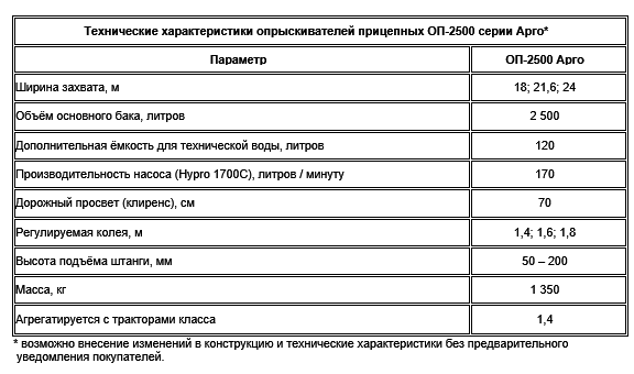 Опрыскиватели прицепные ОП-2500 серии Арго