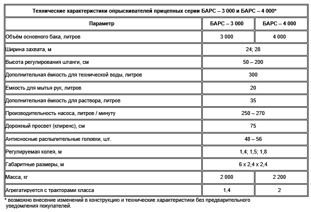 Опрыскиватели прицепные ОП-3000 и ОП-4000 серии Барс